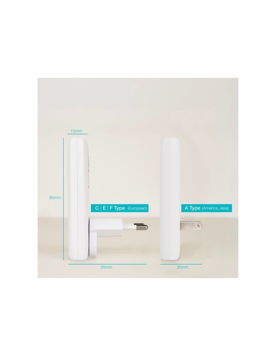 El cabezal principal Tipo C, E y F (Europeo) se convierte rápidamente, (simplemente aprendo una pestaña roja y deslizando) en un cargador Tipo A (americano, asiático) para convertirse en un cargador de viaje indispensable en tu maleta.