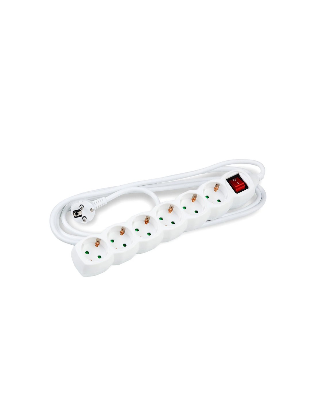 La regleta Technik en color blanco incluye 6 enchufes y un cable de 1,5 metros de longitud, ideal para conectar varios dispositivos en el hogar u oficina. Cuenta con un interruptor de encendido y apagado que permite controlar fácilmente el flujo de energía. Con unas dimensiones de 33x4,5x4,1cm, esta regleta es compacta y funcional.