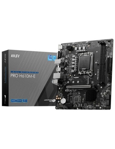 La MSI PRO H610M-E es la placa base perfecta para aquellos que buscan el mejor rendimiento y la máxima fiabilidad a la hora de construir su PC. Este modelo está diseñado para ofrecer una experiencia de usuario inigualable, con características avanzadas que satisfacen las demandas tanto de usuarios domésticos como profesionales. Descubre todo lo que este robusto componente puede ofrecerte y eleva tu configuración a un nuevo nivel.